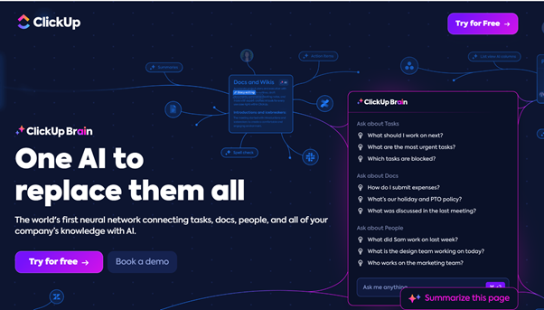 ClickUp has so many features that it might take a bit of time to learn how to use them all. But don’t worry, they offer tutorials, support, and documents to help you get started. One thing to note is that not everything is available on the mobile app yet. Now coming to the AI part, ClickUp brain is a wonderful AI assistant that can help you with most of your work starting from making quick summaries to giving out useful outputs. You also need to understand that it’s still an AI.