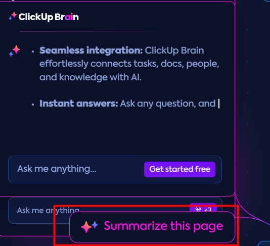 We will now see some of the top Clickup brain features that you will get in the AI tool.