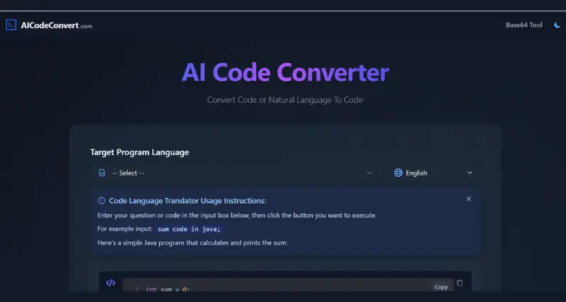 Support for popular programming languages: The AI Code Converter supports popular programming languages such as JavaScript, Python, Java, and more.