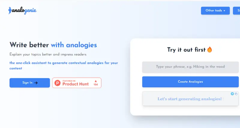Engaging Content: It generates complete analogies based on user input, making the writing more memorable and effective.