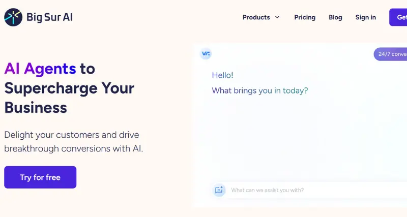 Big Sur AI is a brilliant AI-driven platform that transforms customer interaction and sales for companies in a digitally changing age. Your twenty-four-seven intelligent sales and service sidekick, Big Sur AI couples innovative technology with personalized interaction to enable companies to delight customers, streamline operations, and reach record-breaking conversion rates. Regardless of whether you want to optimize your e-commerce website, drive more engagement on your website, or gain actionable insights in an easier manner than ever, Big Sur AI offers you a hassle-free solution.