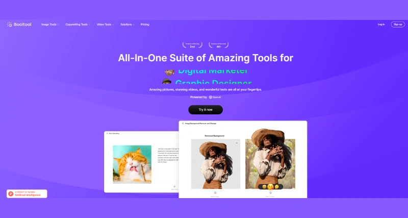 Booltool is an AI-powered, browser-based content creation suite designed for digital marketers, content creators, online shop owners, and graphic designers. It offers a comprehensive range of tools for image editing, AI-assisted copywriting, and video enhancement, all accessible without the need for downloads or technical expertise. It aims to streamline the creative process, enabling users to produce high-quality visuals and content efficiently. With just a few clicks, you have instant access to an abundance of visual and written content at your disposal by it.