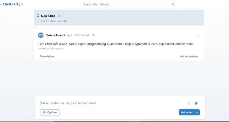 ChatCraft is a web-based AI tool designed to assist developers in writing, debugging, and exploring code. It integrates with multiple AI providers, including OpenAI and OpenRouter, allowing users to interact with various models within a single platform. With features like customizable prompts, local data storage, and support for visualizations, ChatCraft enhances the coding experience directly from the browser.
