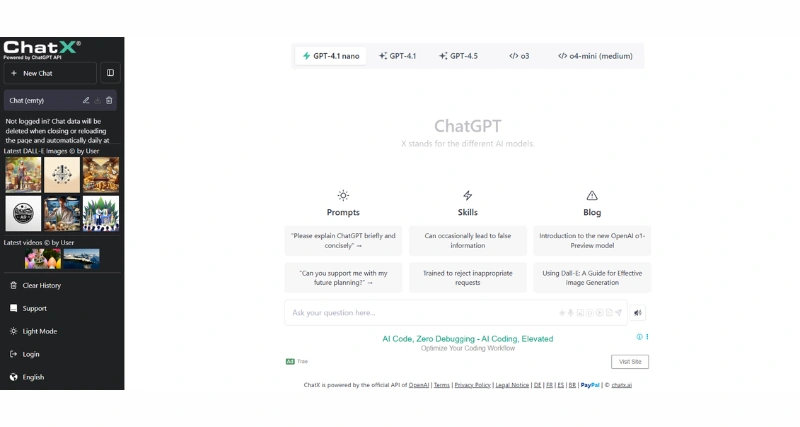 ChatX is an online marketplace that allows users to purchase and sell prompts for generative AI. The platform offers a wide range of prompts from various sources around the world, enabling users to explore the full potential of AI with popular models such as ChatGPT, DALL-E, Stable Diffusion, and Midjourney.
