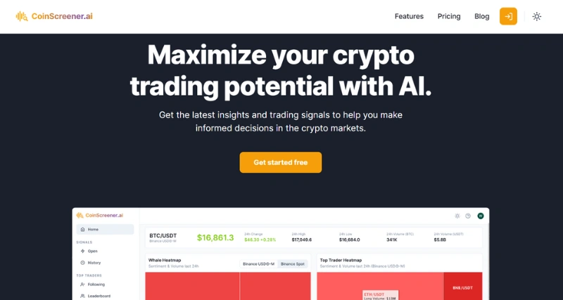 CoinScreener is an AI-driven platform designed to enhance cryptocurrency trading by providing real-time insights and analytics. Leveraging advanced machine learning algorithms, it monitors over 1,000 markets and analyzes more than $100 billion in daily trading volume to deliver actionable trading signals, track whale activities, and follow top traders’ movements. With a user base exceeding 50,000 traders,it aims to empower users with data-driven tools to navigate the volatile crypto market effectively.