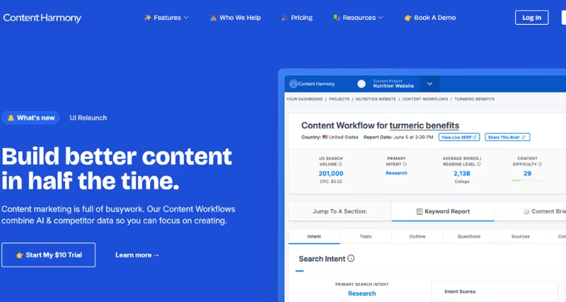 Content Harmony is a content marketing software designed to streamline the content creation process. It combines AI and competitor data to help teams create high-quality content more efficiently. The platform offers features like keyword reports, content briefs, and a content grader to ensure comprehensive and optimized content.
