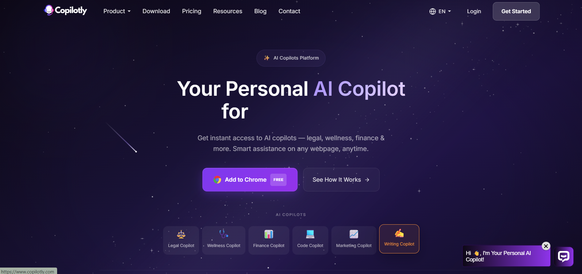 Copilotly is an AI-powered assistant that helps users improve their productivity and various skills. It has a wide range of copilots that can assist with content generation, information finding, and simplifying complex text. The browser extension allows easy access on all major browsers for seamless integration. The user-friendly interface makes it easy to navigate and utilize. It is suitable for various professionals such as writers and researchers, marketers and content creators, and individuals looking to save time and focus on important tasks.