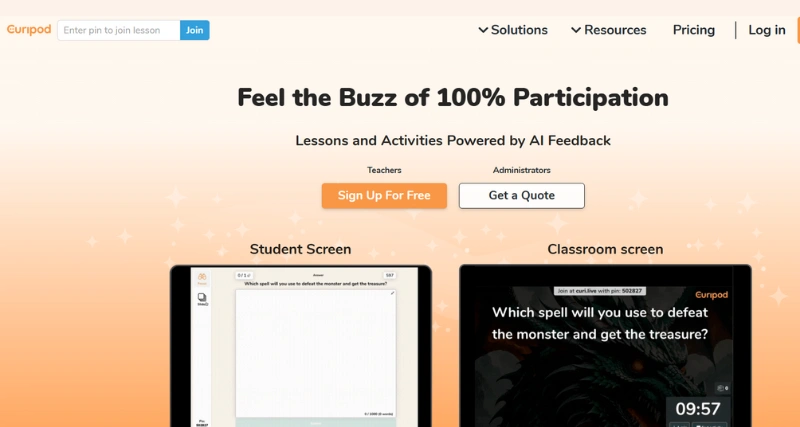 Curipod is an interactive learning platform that allows teachers to create engaging lessons using various tools such as polls, word clouds, open questions, drawings, and Q&A sessions. Teachers can either create their own slides within Curipod or upload their existing presentations.