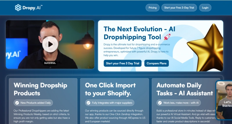 Dropy AI is an AI-powered dropshipping platform designed to help users build and scale successful eCommerce businesses. It simplifies every stage of the dropshipping process—product sourcing, inventory management, order fulfillment, and customer service—using automation and AI insights. With its intuitive AI Virtual Assistant and powerful AI-driven social media tools, Dropy.AI enables users to enhance store performance, boost organic traffic, and maximize revenue. Whether you’re a solo entrepreneur or a growing brand, Dropy.AI streamlines operations and enhances your eCommerce journey effortlessly.