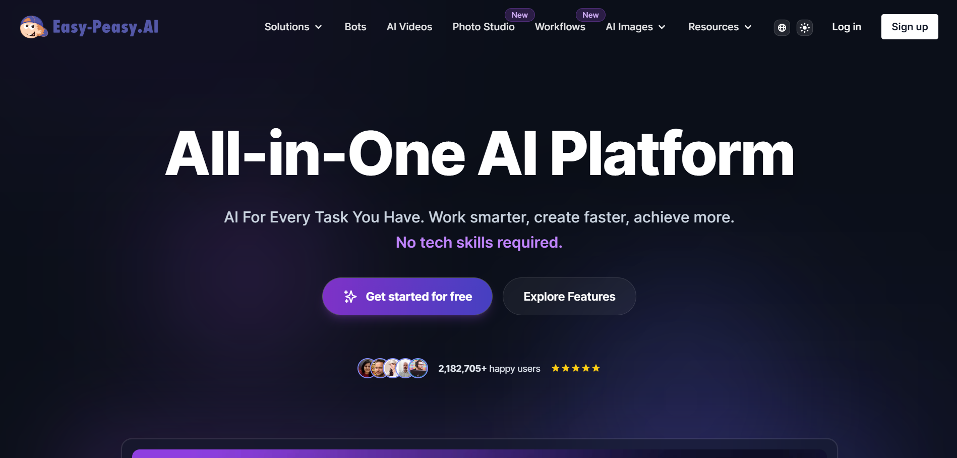 Easy Peasy AI is an AI-powered content assistant that helps streamline content creation for individuals and teams. It offers over 80 AI copywriting templates, AI images, AI transcription, and an AI buddy named Marky for natural language conversation. The tool caters to various content creation needs, including saving time and effort for content creators, generating engaging copy and visuals for marketing teams, and enhancing content strategies for businesses and organizations using AI technology.
