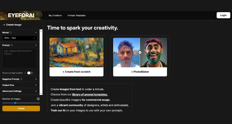 Eye for AI is an AI-based platform that allows users to create images from text in under a minute. It provides various tools and templates for image generation, including a visual prompt builder, reusable templates, versatile image generation options, and a wall feature for showcasing user creations. The platform also includes descriptors for adjusting the AI’s generated output to meet specific needs.