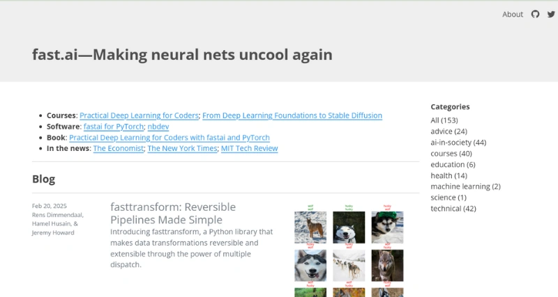 fast.ai is a non-profit research organization focused on making deep learning and artificial intelligence more accessible. It aims to democratize AI education by offering free, high-quality courses that empower individuals from all backgrounds to enter and excel in the field. Founded by prominent AI researchers, also conducts impactful research that challenges conventional norms in AI development. The platform is ideal for students, researchers, self-learners, and professionals interested in cutting-edge AI and deep learning applications. Through its accessible educational resources and community-driven approach, fast.ai fosters a collaborative environment that promotes responsible innovation.