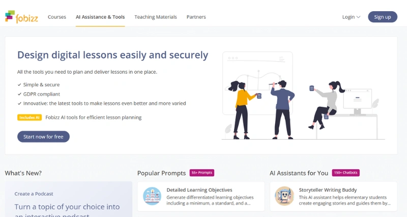 Fobizz tools is a comprehensive digital tool suite designed to improve teaching and learning experiences. It includes online courses, live webinars, lesson materials, and various tools for efficient teaching and learning. The AI assistants allow users to create and share content quickly and easily, including worksheets, multimedia boards, surveys, and more. These tools prioritize privacy and security by being data privacy-friendly and secure, and it’s DSGVO compliant. The platform is free to use, making it accessible to educators and students alike.