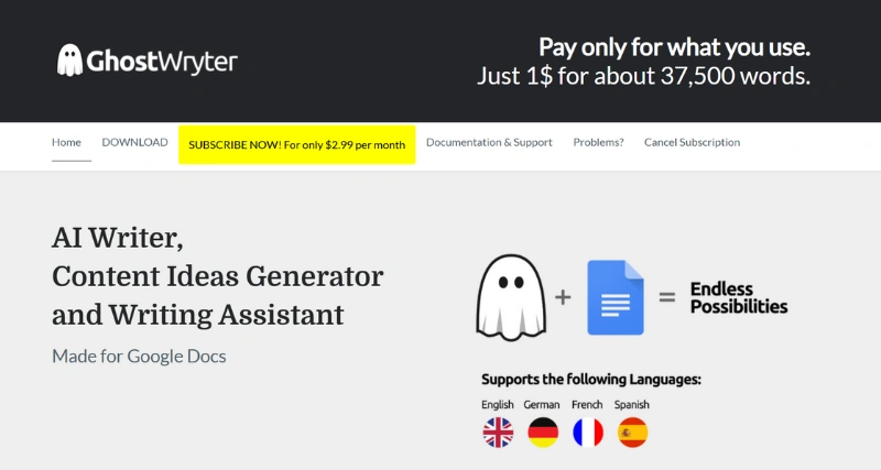 Google Docs Integration: Seamlessly integrates with Google Docs™, allowing users to leverage AI capabilities within their preferred writing environment.