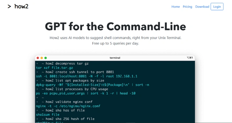 How2 is an AI-powered tool that enhances the Unix Terminal experience by providing code completion for shell commands. It uses AI models retrained on Bash/Zsh commands to suggest relevant shell commands, helping users quickly create Bash scripts and streamline their command-line workflow. The tool offers five free queries per day, StackOverflow integration, and cross-platform support. It is a valuable tool for Unix Terminal users, developers, system administrators, and anyone seeking a safe and reliable way to navigate the terminal efficiently.