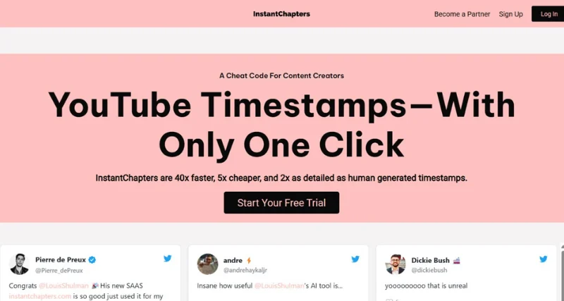 AI-Powered Chapter Generation: Instant Chapters utilizes proprietary AI technology to automatically generate timestamped chapters for YouTube videos.