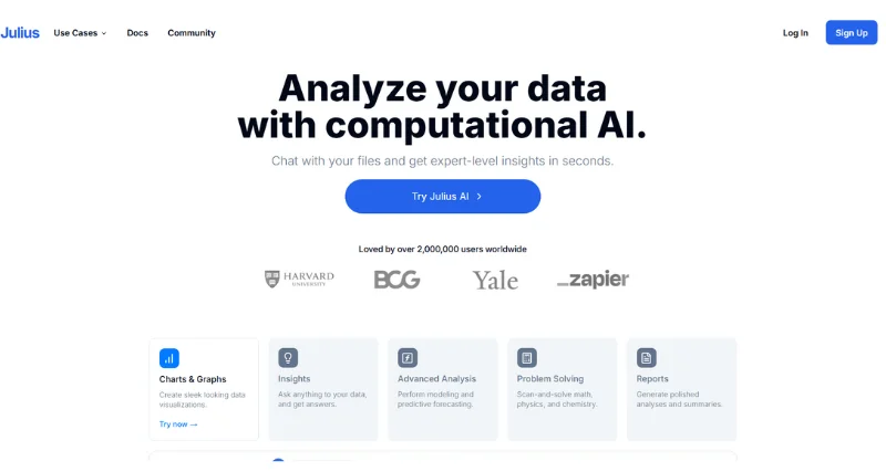 Julius AI is an advanced AI-powered tool designed to revolutionize data analysis and visualization through intuitive natural language interaction. It empowers users to process, analyze, and visualize complex datasets without requiring coding skills, making sophisticated data manipulation accessible to professionals across various fields.