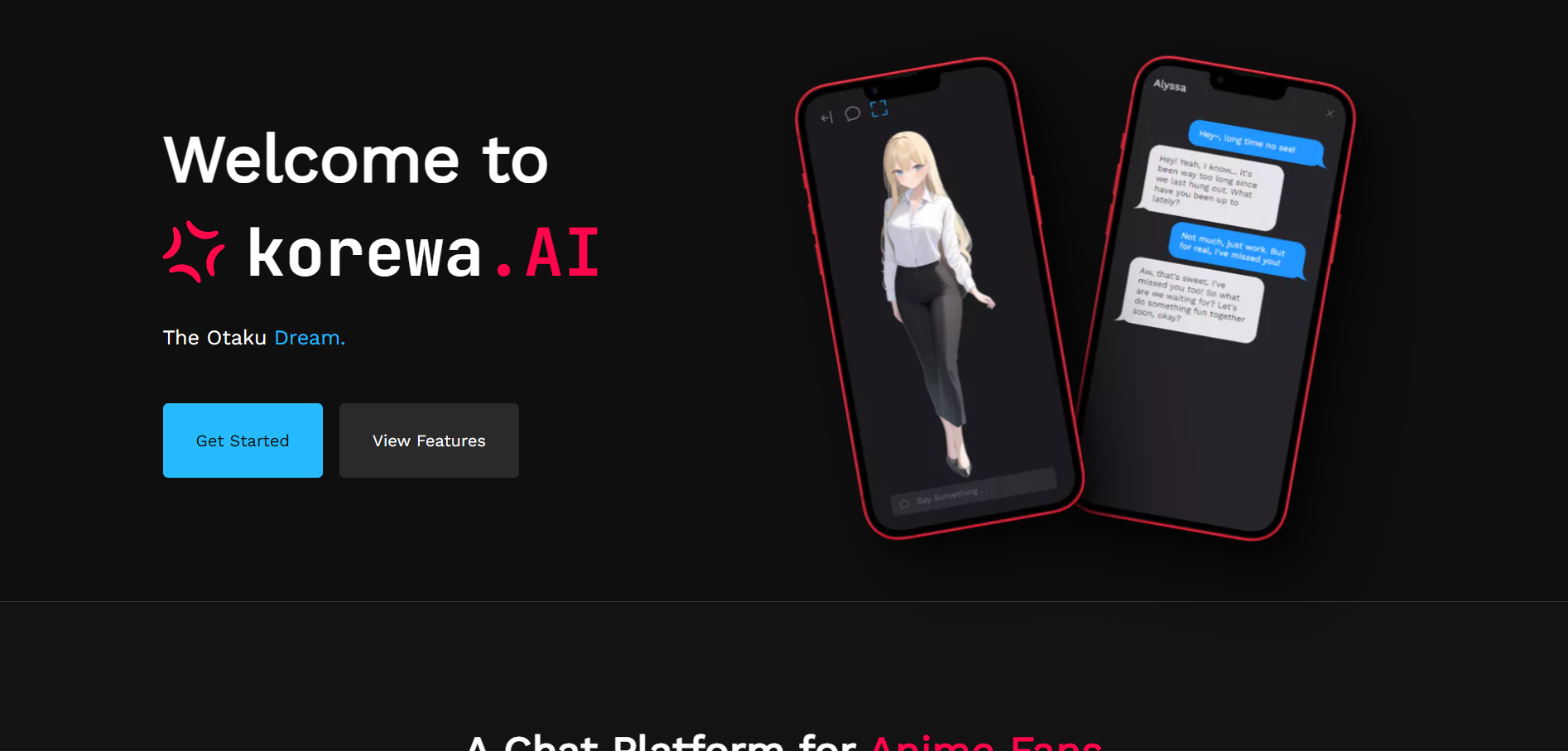 Korewa AI is an AI-powered platform designed specifically for anime fans. It allows users to create and interact with AI anime characters that have realistic emotional responses. The platform uses advanced AI models that are fine-tuned for anime characters, making it stand out from other AI platforms. Users can enjoy a highly visual experience with anime characters, seeing their emotions shift as they speak to them. It also provides a niche community for anime fans to connect and share experiences.