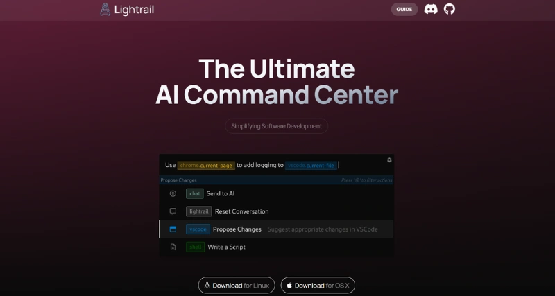 Lightrail is a command bar tool that provides easy access to an always-on LLM instance. It allows users to seamlessly integrate information from multiple applications, including VSCode projects and Chrome tabs. It is open source and extensible, allowing users to customize it according to their needs. It is an open-source AI command center designed to streamline software development by integrating intelligent automation across various applications. It enhances productivity by leveraging data from active tools like code editors and web browsers, allowing AI to propose code, navigate software, and create files seamlessly.