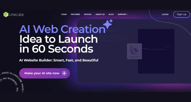 Limecube AI Website Builder is a smart, fast, and beautiful website builder that offers a range of features to help users create their websites quickly and easily.
