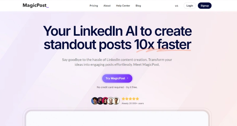 MagicPost is a powerful tool designed to help users create exceptional LinkedIn posts quickly and easily. By leveraging the capabilities of GPT-4 and an advanced algorithm, the tool enables users to craft high-quality content in just 30 seconds. This saves users valuable time while ensuring their posts stand out from the crowd. Whether you’re looking to boost your personal brand or drive engagement for your business, the tool offers a streamlined solution that delivers top-notch results. The tool is a revolutionary tool that helps users create exceptional LinkedIn posts quickly and efficiently.
