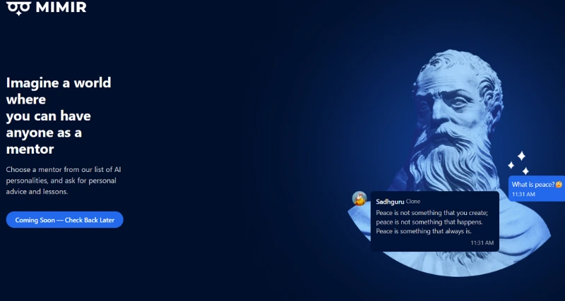 it is an AI-powered platform launched in 2023 by Naamche, offering virtual mentorship through AI clones of famous personalities like Osho and Sadhguru. Users can engage in personalized conversations to seek advice and insights, with plans to expand the roster of AI mentors. For content writers, Mimir is a unique resource for creating content on AI-driven mentorship, personal development, and innovative conversational tools.