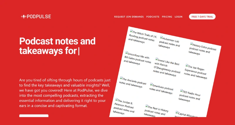 Audiophiles: For avid listeners, PodPulse offers a new perspective on their favorite podcasts by presenting essential insights and key points in a bite-sized format, encouraging exploration and discussion.