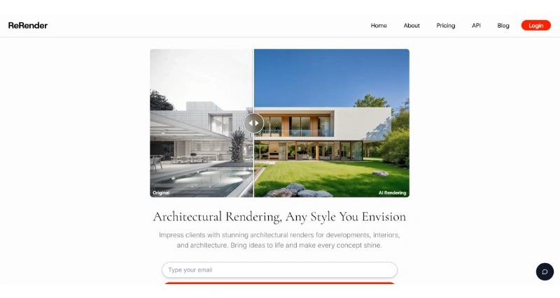 ReRender AI is a cutting-edge tool that helps architects and designers create stunning photorealistic renders of their projects in just seconds. With over 50 unique design styles to choose from, users can visualize their projects in various ways, catering to diverse building types such as homes, apartments, offices, schools, and hospitals. The tool’s easy-to-use interface allows users to upload their images, confirm their emails, and start using ReRender AI immediately.