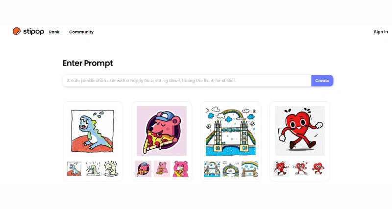 AI-Generated Designs: Utilizes advanced AI algorithms to generate sticker designs based on user input prompts.