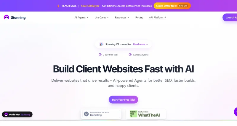 In Stunning, ChatGPT Website Builder is an AI-powered website generator that simplifies the website creation process. It allows users to create websites with copy and images in less than 30 seconds using NLP and machine learning for tailored content and images. Users have the option to customize their website by adding their own copy and images. This AI website builder does not require any coding knowledge, making it accessible to everyone. The product hunt integration keeps users updated on the latest features and allows them to join the waitlist.