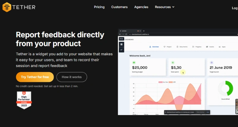 Seamless Integrations: Tether integrates with tools such as Slack, Jira, Asana, Linear, and Notion, allowing teams to manage feedback within their existing workflows.