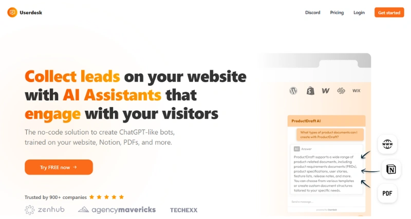 No-Code Solution: Userdesk offers a no-code solution, enabling users to create trained AI ChatBots within minutes without the need for technical expertise.