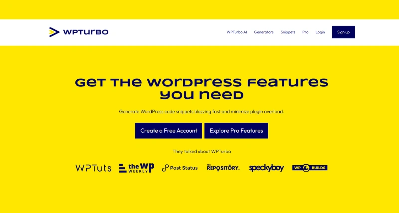 WPTurbo is a comprehensive set of WordPress development tools designed to streamline the process of creating clean, efficient, and fully customizable WordPress code. It includes a range of features such as AI-powered code generation, code generators, and a snippets library to help developers build websites faster and more efficiently.