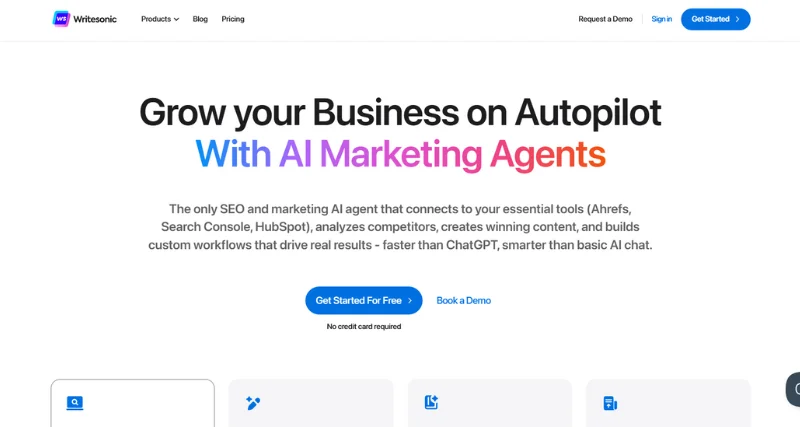 Writesonic is an AI writing tool that makes creating quality content quick and easy. It uses advanced natural language processing technology to craft professional and interesting text within seconds. This tool handles many types of content, like blogs, social media posts, ads, product descriptions, emails, and even detailed articles. Writers pushing through tight schedules and marketers aiming to increase content output can use Writesonic to simplify content creation. It gives you custom content ideas based on what you provide.
