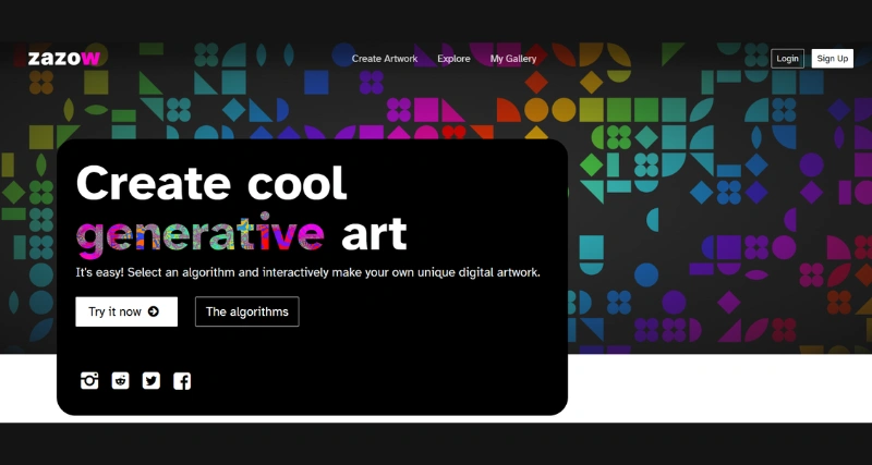 Zazow is a digital generative art tool that offers a variety of algorithms for artists to explore different artistic styles and create mesmerizing artwork. The tool includes Mandelbrot Fractals, Plasma, Spiro, Bauhaus, and more, allowing artists to experiment with various techniques and create unique compositions. The user-friendly interface provides full control over every aspect of the artwork, making it easy for artists to save and share their creations within the Zazow community. Notifications are available for updates on new tools and NFT options.